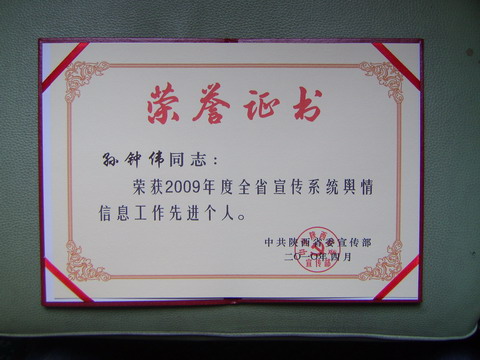 4月14~16日,陕西省宣传系统舆情信息工作会在安康召开。省委宣传部刘伟副部长作了重要讲话,刘部长总结了我省舆情信息工作的特点,明确舆情信息工作面临的新形势,指出了工作中存在的不足,提出强化组织领导,创新方式方法的新观念。网管办刘若松主任通报了中宣部全国舆情信息工作会有关精神,对2010年全省宣传系统舆情信息工作做了安排部署。会议对2009年度舆情信息工作先进单位、先进个人和“好信息奖”进行了表彰,我校思政部教师孙钟伟被评为“2009年度全省宣传系统舆情信息工作先进个人”称号。