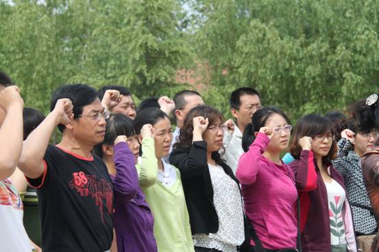 参观结束之后,新、老党员一起于渭华起义纪念馆广场上进行宣誓活动。铿锵有力的誓言声,使每一名共产党员铭记,不管在任何时候、在任何情况下,都不忘自己对党作出的郑重承诺,无论在顺境还是逆境中,都要按照入党誓词行事。它坚定着每位老师的理想与信念,震憾着每一位老师的心灵。