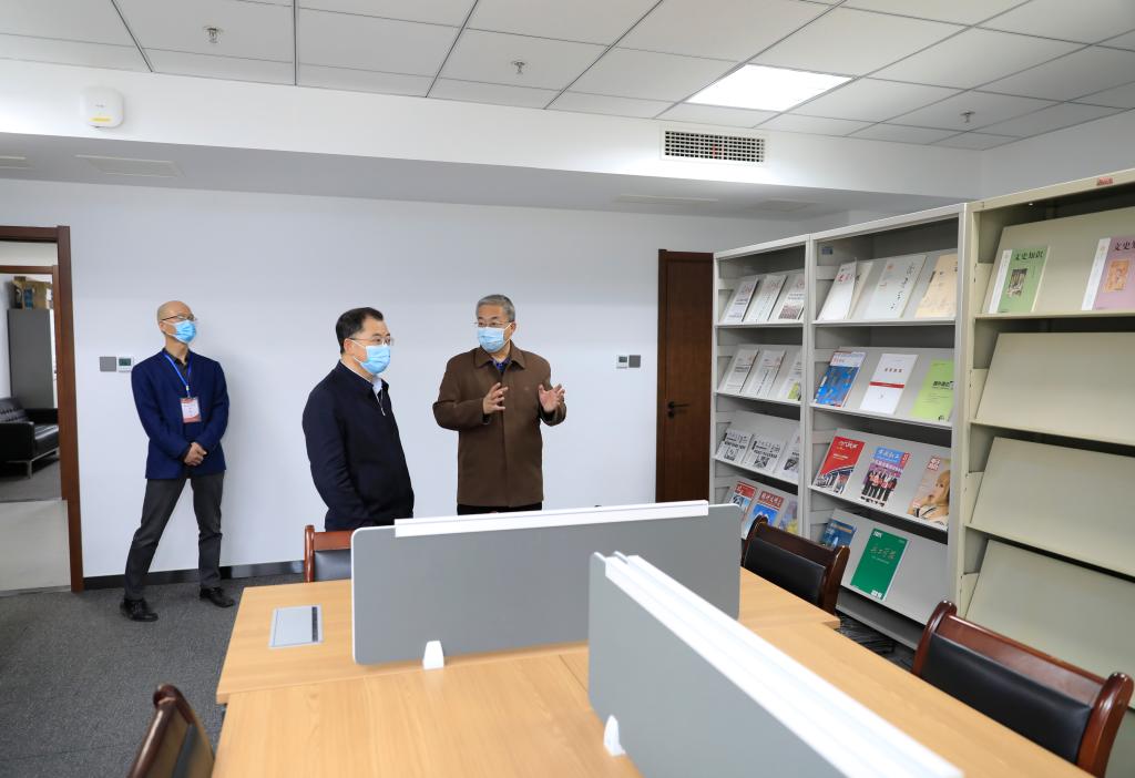 办公场所,一一查看了各教研室和期刊阅览室,了解相关情况。