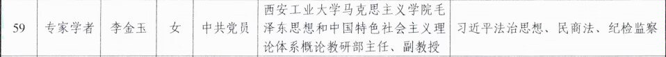 李金玉副教授入选“陕西省法治人才库基础领域子库”。