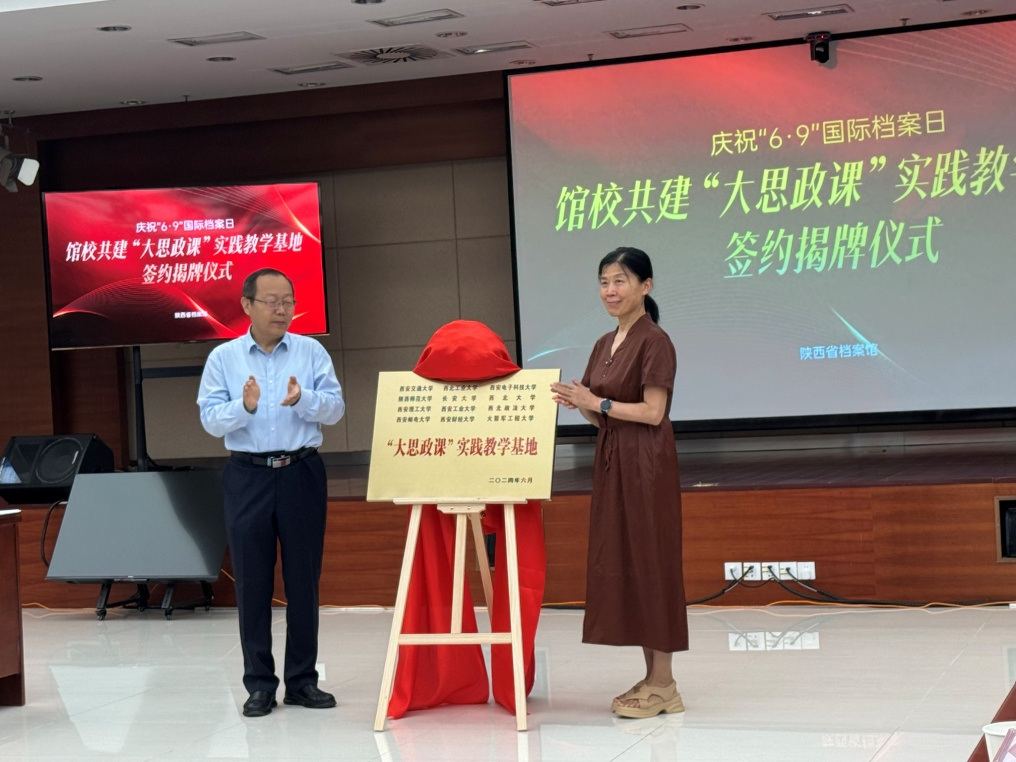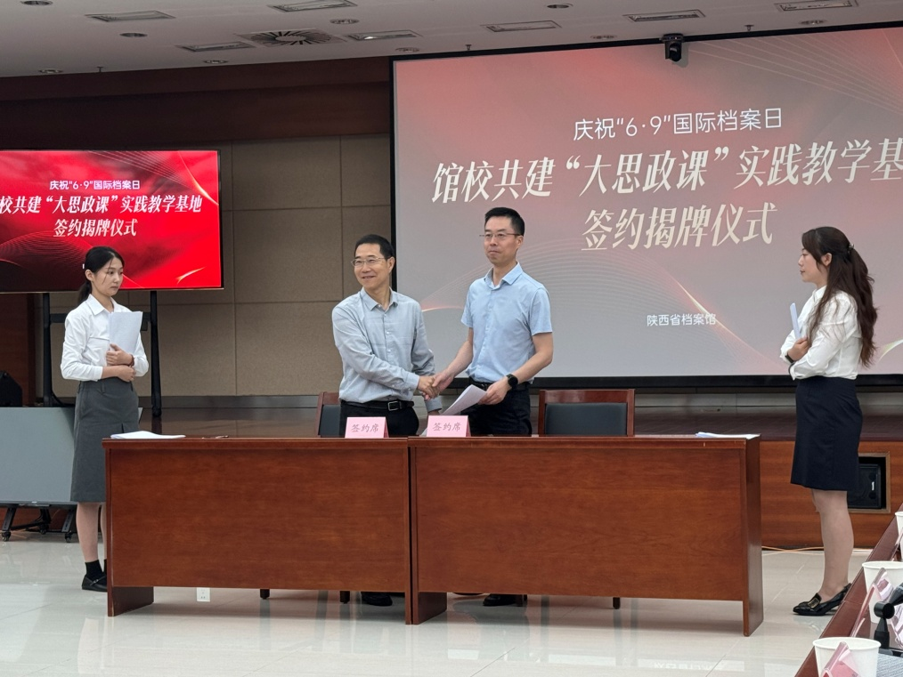 与陕西省档案馆签署了“馆校共建‘大思政课’”实践教学基地共建协议。西安交通大学等省内12所高校参加了签约揭牌仪式。