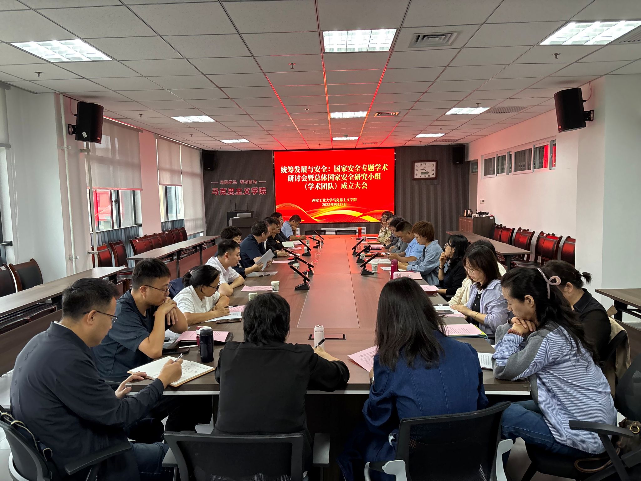 会后,学术团队全体成员围绕“统筹发展与安全”主题,分别从国家战略、文化安全、经济发展、新质生产力、铸牢中华民族共同体意识、社会舆情风险、大学生成长路径等10个专题进行了交流与研讨,现场氛围热烈。