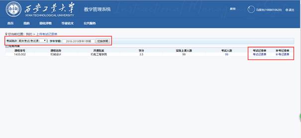 点击我的->上传考试记录单,进入上传考试记录单显示页面(图1.1.1),根据当前学期排考批次显示上传考试记录单任务列表,提供上传“考试记录单”、“补考记录单”等功能;