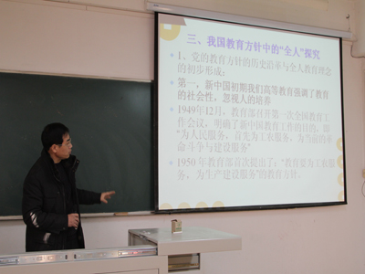 为加强教师之间的交流,推动西安工业大学思政部教学、科研水平的进一步提高,展示教师在学术领域的精彩学术观点,思政部特举办 “精彩学术观”学术大讲堂。12月16日,大讲堂第三讲在金花校区6-206教室开讲,由田亮教授主讲题为“全人—高等教育的终极目标”学术报告,思政部全体教师及研究生参加了此次活动。