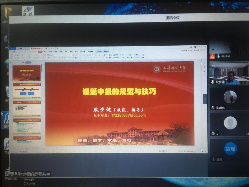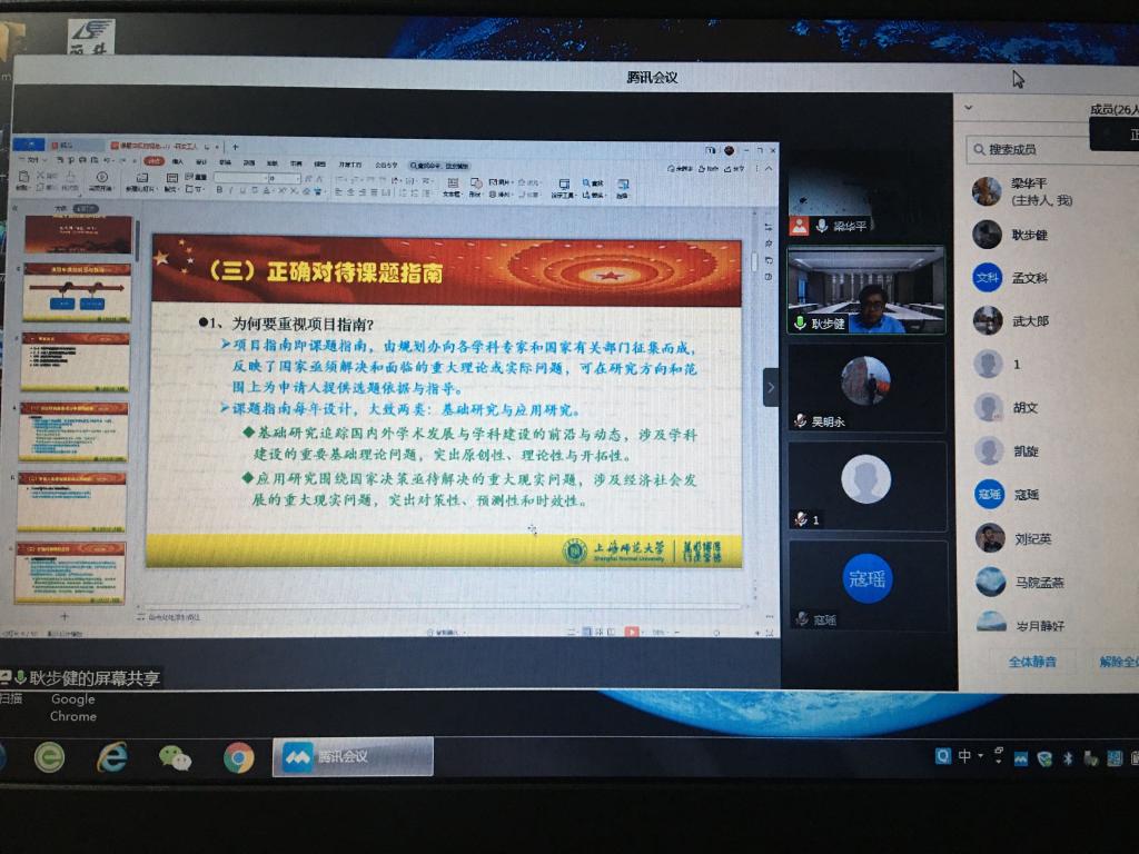 20201210日,新加坡博彩app 邀请上海师范大学新加坡博彩app 副院长耿步健教授为全体老师做了题为“课题申报的规范与技巧”的讲座。耿步健教授兼任国家社科基金项目评审专家,教育部学位中心评审专家等职务,具有丰富的基金申报经验。耿教授从国家社科基金项目的申报类别入手,围绕国基金申报书的各部分内容,结合个人撰写经验和评阅经验,系统翔实的解析了每一部分的撰写技巧和注意事项,重点突出,启发性强。