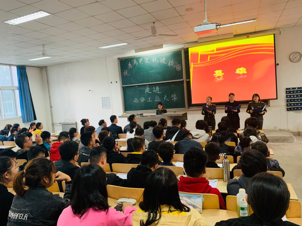 邀请八路军西安办事处纪念馆《理想•信念》宣讲团,走进我校“思想道德修养与法律基础”课堂,为300余名师生讲授了一堂铭记革命传统、弘扬红色精神的思想政治理论课暨主题教育党课。