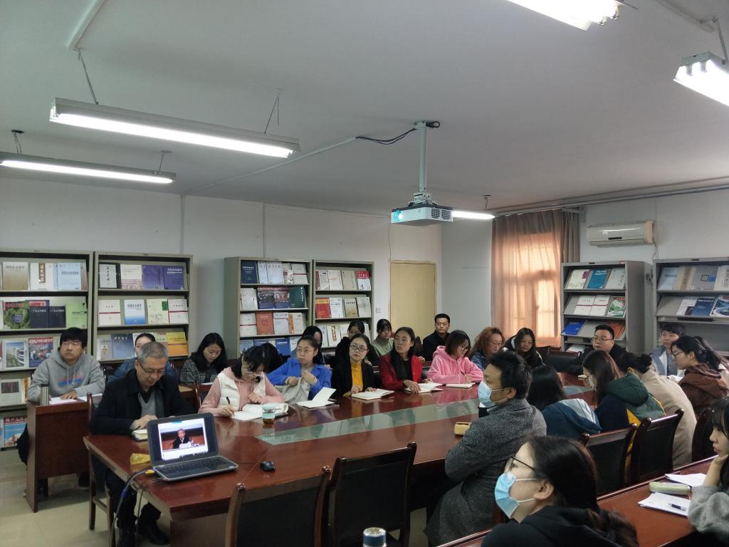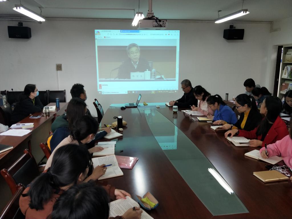11 13 日上午9:30,新加坡博彩app 组织新加坡博彩app 教师和研究生,在新加坡博彩app 会议室,通过“全国高校思政课教师网络集体备课平台”网络观看,由中央宣讲团成员、教育部党组书记、部长陈宝生作的“党的十九届五中全会精神”导学报告会。