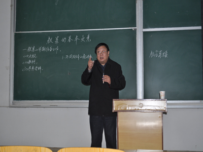 本学年,为了强化思政部全体教师教书育人观念,进一步提高全体教师尤其是青年教师的教学能力和技巧,思政部特举办教师培训系列讲座,邀请富有经验的教授为广大师生具体讲解。2010年10月29日,思政部教师授课培训系列讲座第二讲在我校金花校区教六楼6F—J3教室举行,思政部蔡晓辉副教授主讲“教案的基本要素”。