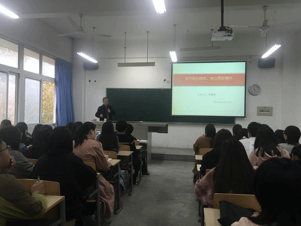 1028日下午,新加坡博彩app 党委书记李晓彤为新加坡博彩app 全体研究生党员、发展对象和积极分子讲授“坚守初心使命,树立思政情怀”主题教育专题党课。学校“不忘初心、牢记使命”主题教育第一督导组组长曲敏老师参与指导。