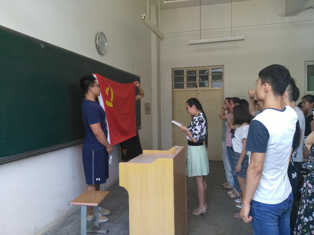 接下来,全体党员在党支部书记杨婧老师的带领下,面对鲜红的党旗,重温入党誓词。此次庄严的重温入党誓词活动对全体党员是一次党性锻炼和熏陶,进一步坚定了全心全意为人民服务的理想信念。