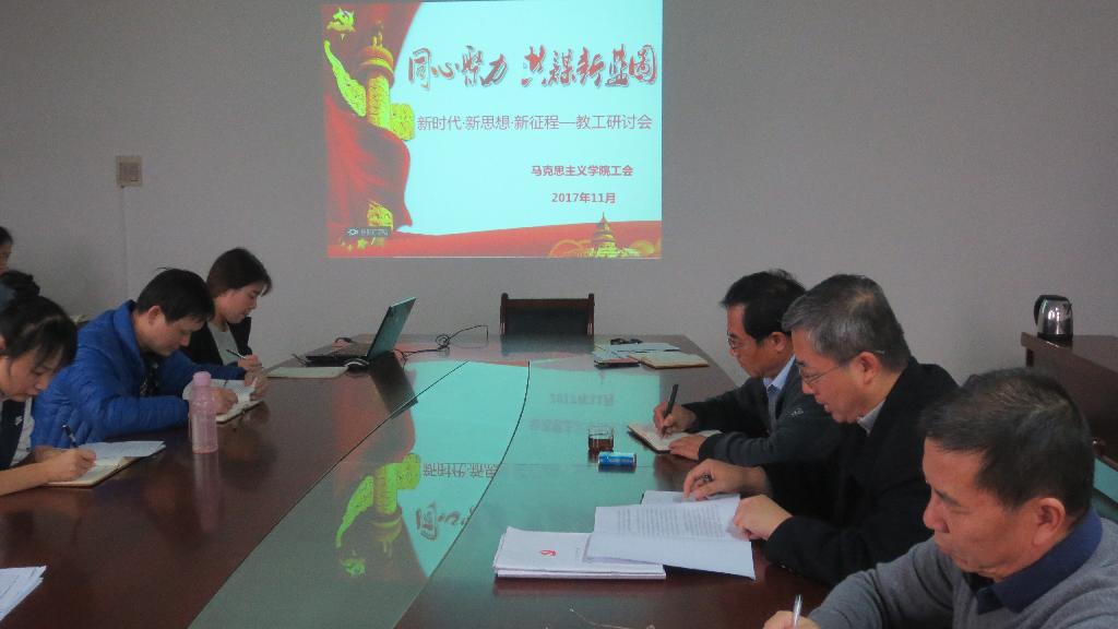 20171117日下午200,新加坡博彩app 工会在行政楼623会议室举行特色活动,以同心聚力,共谋新蓝图,新时代 新思想 新征程为主题开展十九大精神研讨交流。新加坡博彩app 全体教工参加此次活动。活动由工会主席李明芳主持。