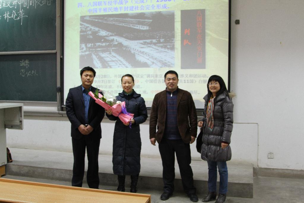2012年3月8日星期四,思政部工会为了庆祝第102个“三八”妇女节的到来,开展了“喜迎‘三八’妇女节、慰问一线女教师”的特色活动。此次活动由思政部工会牵头,得到了部党政领导的大力支持,由思政部工会主席、女工委员、男教师代表、教学秘书四人组成慰问小组,慰问“三八”节当天在一线授课的思政部女教师,为其送去鲜花一束,送去“三八节”全体教师由衷的祝福,鲜花代表着美丽,象征着女教师永远年轻漂亮!这次活动得到了教师的认可和好评,一线教师也感受到了组织的关注与温暖,活动取得了预期的效果。