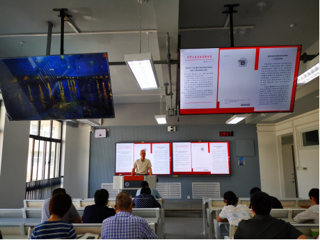 在教七楼305教室举行“师德师风建设月”启动仪式,并集中学习了《新时代高校思想政治理论课教师行为规范和准则》。会议由党委书记杨灏主持。
