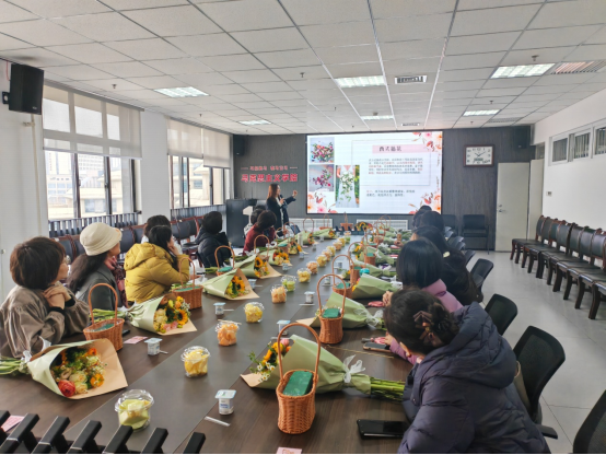工会举办“花漾时光·指尖浪漫” 插花艺术体验活动。近20名女教师齐聚一堂,在花香四溢中体验花艺魅力,共庆属于自己的节日。