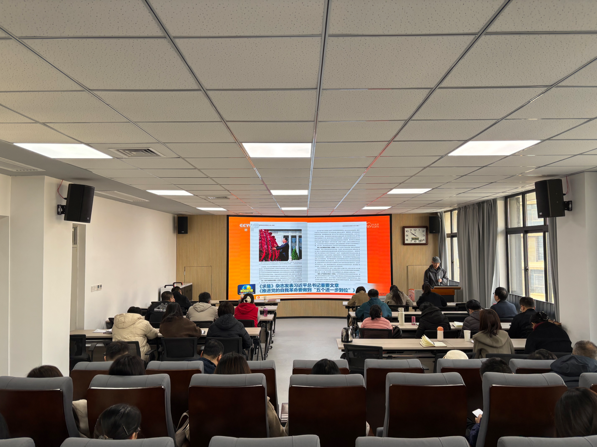 会议学习了今年第23期《求是》杂志发表的习近平总书记的重要文章《推进党的自我革命要做到“五个进一步到位”》。文章强调,自我革命是我们党跳出治乱兴衰历史周期率的第二个答案。从抓作风入手推进全面从严治党是新时代党的自我革命一条重要经验。围绕党的自我革命,思路要求都是明确的,关键在于抓落实要真正到位。文章从对党的自我革命认识、党员干部增强党性、权力规范运行、从严监督执纪、落实管党治党责任等五个方面提出了进一步到位的要求。