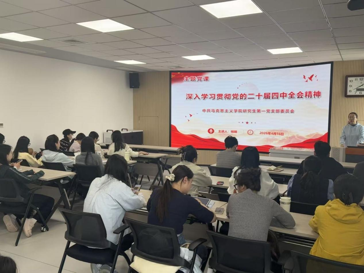 4月16日上午,研究生第一党支部开展深入学习贯彻党的二十届四中全会精神主题党课。党课由党支部书记杨婧主讲,全体党员参加学习。