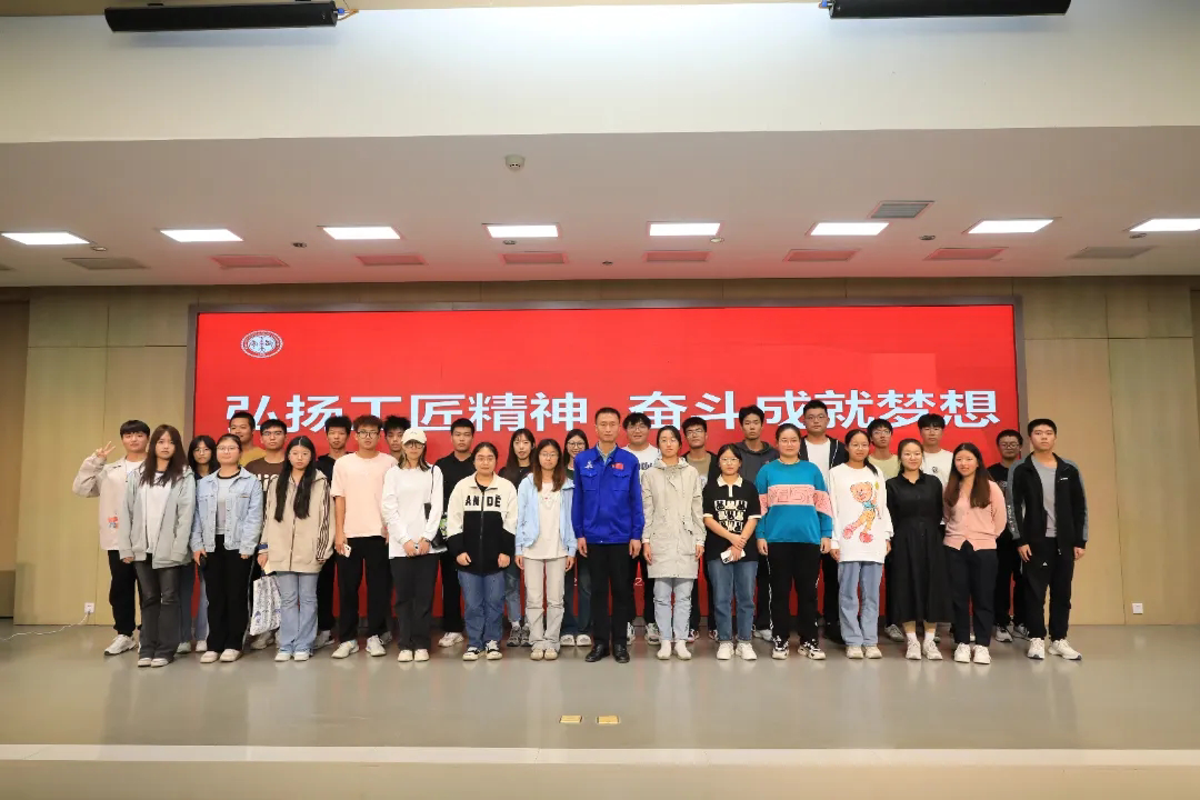 徐立平为国家高级技师、航天特级技师,中航四院固体火箭发动机总装厂7416厂固体火箭发动机燃料药面整形组(徐立平班组)组长,全国人大代表、陕西省总工会副主席(兼职)。徐立平以“弘扬工匠精神 奋斗成就梦想”为主题,在报告中介绍了我国航天事业的发展历程以及取得的辉煌成就。他结合自身在航天事业默默坚守30余年的经历,回顾了航天创业者的艰辛奋进,用最真切的工作案例生动展示了航天人的牺牲、奉献,诠释了大国工匠执着专注、精益求精、一丝不苟、追求卓越的工匠精神内涵。他勉励现场的青年大学生们立志民族复兴,不负韶华,不负时代,在青春的赛道上奋力奔跑,让奋斗成为青春最亮丽的底色,让人生在实现中国梦的奋进中收获无限精彩。
