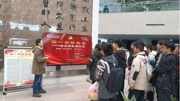 学校图书馆举办的“把一切献给党”兵工记忆图文展,以亲历者的口述记忆回顾了人民兵工的创业史、奋斗史、发展史。从1931年中央军委官田兵工厂开启人民兵工的辉煌事业,到抗战时期、解放战争时期逐步建立较为完备的战时兵工生产体系;从社会主义建设年代,人民兵工开展战备动员、研制生产新型武器装备,建设三线基地,在国防科技工业中率先建成了门类齐全、专业配套、独立完整的武器装备研制生产体系,到改革开放后,人民兵工坚决贯彻“军民结合、平战结合、军品优先、以民养军”的十六字方针,加快推进武器装备现代化,实施保军重大工程。党的十八大以来,人民兵工坚持强军首责,铸大国重器,坚定不移地推动国防和军队现代化,在军民融合、北斗导航、“一带一路”等领域取得了辉煌成就。这些各个历史时期人民兵工的奋斗历程在此次图文展里都得到翔实的呈现。图书馆李艳老师就图文展主要内容对同学们做了详细讲解。