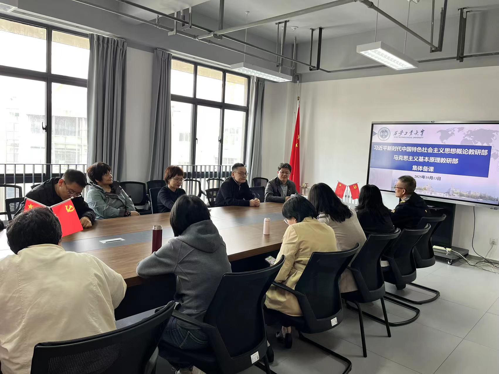 为深化课堂教学改革,让思政课“入脑入心”,2025年10月13日,习近平新时代中国特色社会主义思想概论教研部和马克思主义基本原理教研部开启集体备课行动,通过“共研、共备、共评”的教研方式,有效为教学质量提升注入新动能,着力提升高校思政课课堂教学质量。