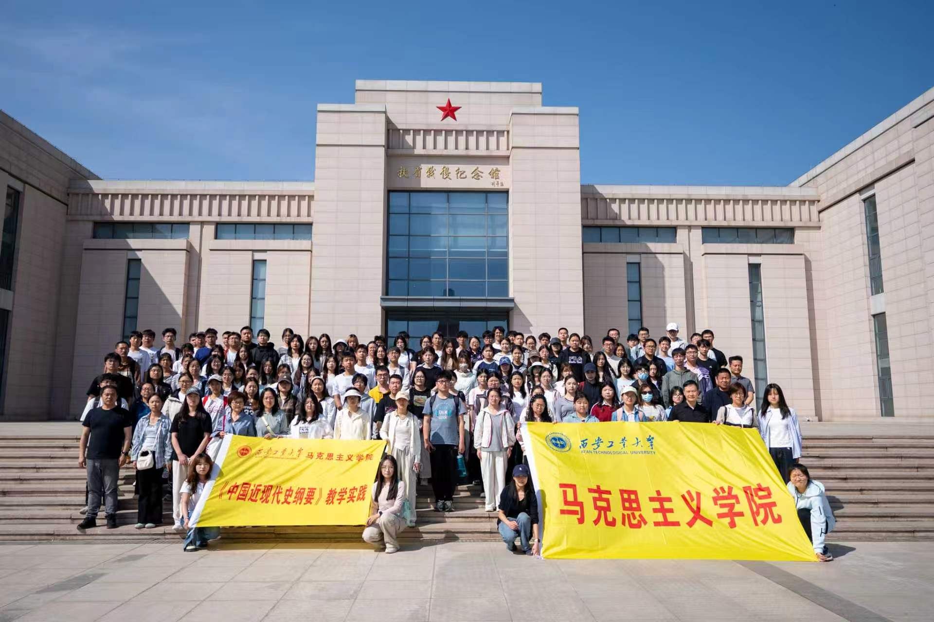 为提升“中国近现代史纲要”课程教学质量,充分发挥社会资源的育人功能,促进思政小课堂与社会大课堂的深度融合,进一步推动课程的教学创新。2026年4月18日,“中国近现代史纲要”课程组织学生前往宝鸡长乐塬抗战工业遗址、扶眉战役纪念馆,开展主题鲜明、内涵丰富的实践教育活动,并与两地共建了我校思想政治理论课实践教学基地。副院长孟文科,教师王立军、陈泊蓉、赵煜、王小平、程俊、裴欣、仇倩倩及学生100余人参加了活动。