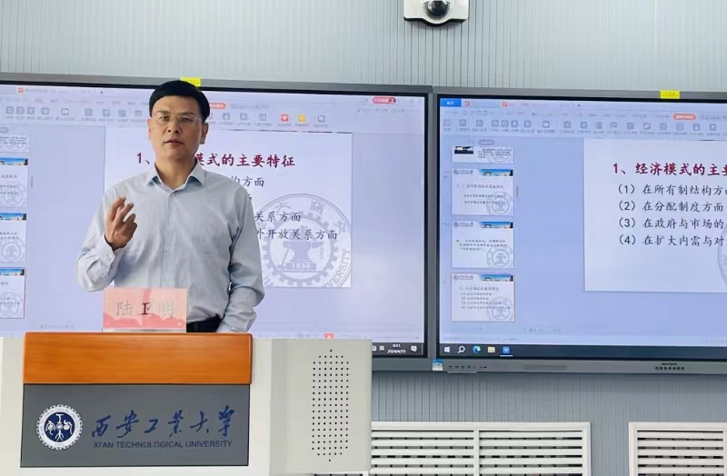 陆教授从中国模式谈起,引经据典,在对中国模式的由来、中国共产党话语体系中的中国模式等进行学理分析的基础上,系统梳理了中国式现代化的历史进程,对中国式现代化的总体布局特别是对当代中国经济发展模式和当代中国政治发展模式做了详细解读,并对中国式现代化的重大价值做了分析。在讲授过程中,陆教授就中国式现代化的研究热点问题与师生进行了交流,启发师生开展相关学术研究。