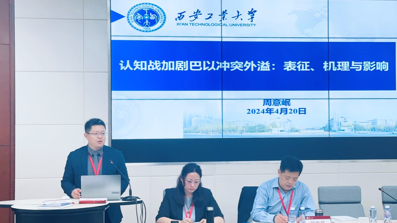 马克思主义基本原理教研部主任周意岷副教授应邀参加,并在大会第一专场做了题为《认知战加剧巴以冲突外溢:表征、机理与影响》的主旨报告,通过梳理认知战加剧巴以冲突外溢的表征,探究了晕轮效应和回声室效应在其中扮演的重要角色,并从个人层次、国家层次和体系层次分析了认知战对国际安全的影响。报告具有一定的学术价值和现实意义,受到与会专家学者的认可和关注。