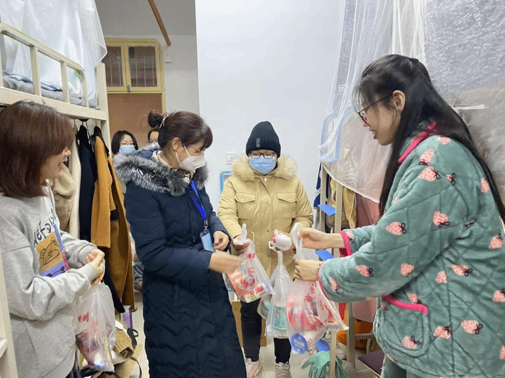 接下来是新加坡博彩app 党委副书记李明芳和新加坡博彩app 辅导员王亚茹通过在公寓内走访学生,为同学们送来元旦礼物及亲切的问候,并且与同学们一起合影留念来记录这一次特殊的佳节。