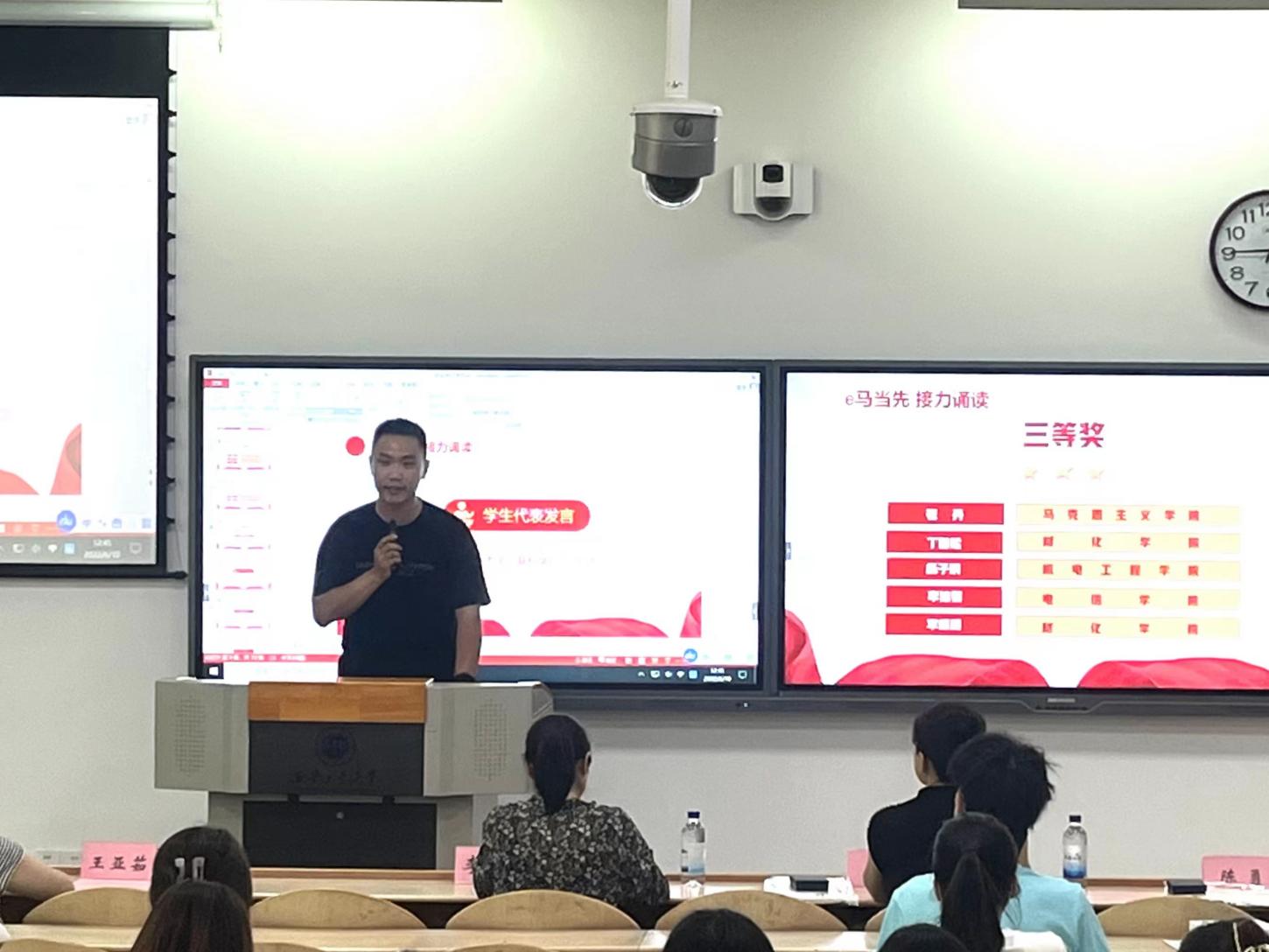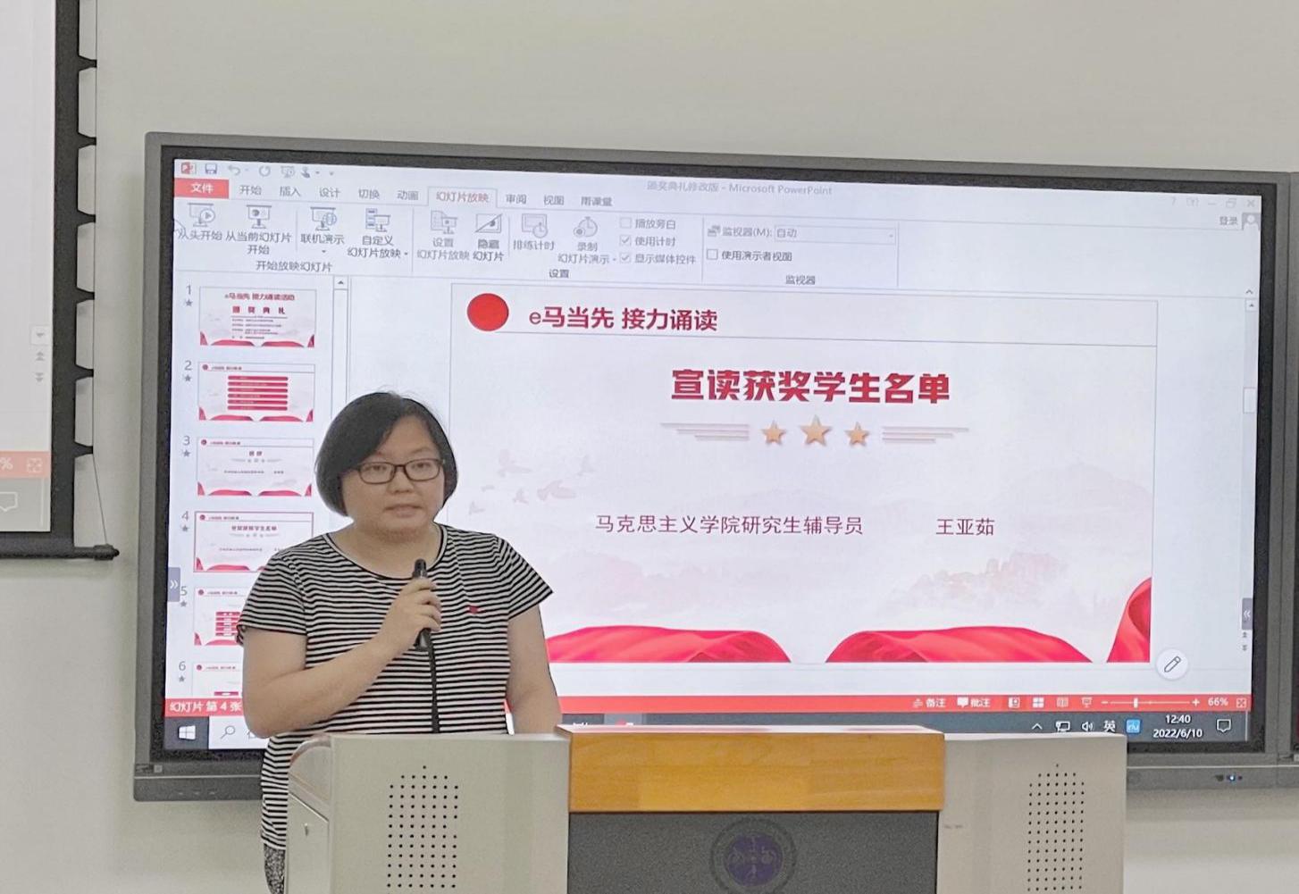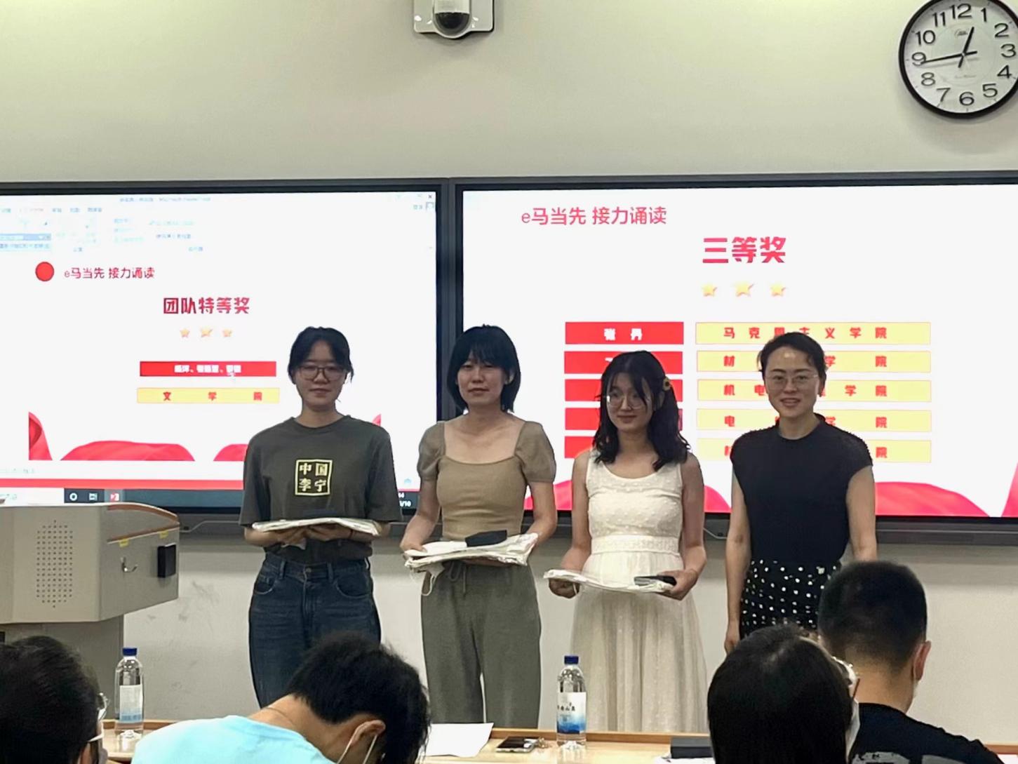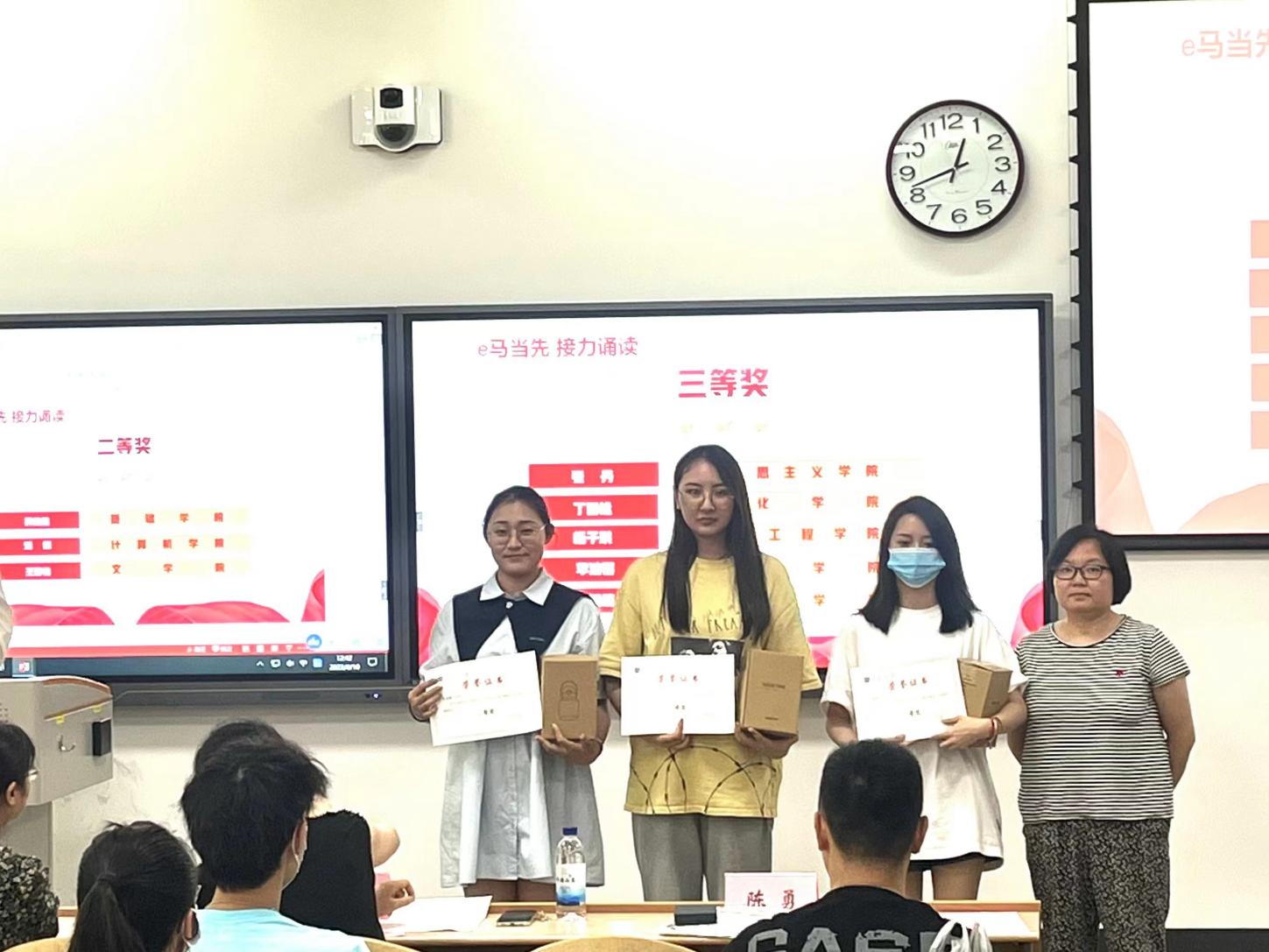 承办的“e马当先,接力诵读”活动一经开始,全校研究生踊跃参与,共收到43名同学的个人诵读和14支队伍参与的团体诵读音频作品,经过五名专业评委评选出最终获奖个人及团队作品。
