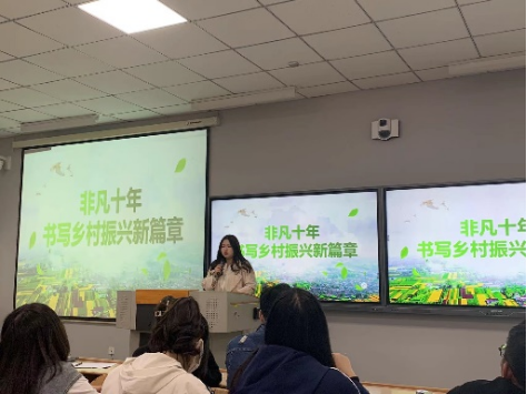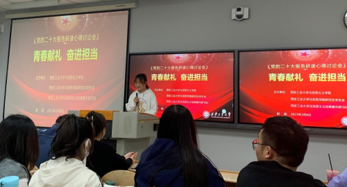 刘包汶、齐浩清、王昀、沈华、李欣然等学生代表围绕“青春献礼 奋进担当”这一主题分别从青年人的使命担当、乡村振兴的丰硕成果、我国国防和军队建设的新态势等多角度分享了自己学习党的二十大报告的心得体会。之后同学们就本次活动主题展开了激烈的讨论。沈华同学更是用平利县茶叶示范园区的成功革新和黄窑村脱贫致富的现实案例极为生动地向我们讲述了“幸福生活是靠奋斗出来的”这一主题。同学们纷纷表示作为新时代的青年,我们要立志做有理想、敢担当、能吃苦、肯奋斗的青年,让青春在全面建设社会主义现代化国家的火热实践中绽放绚丽之花。