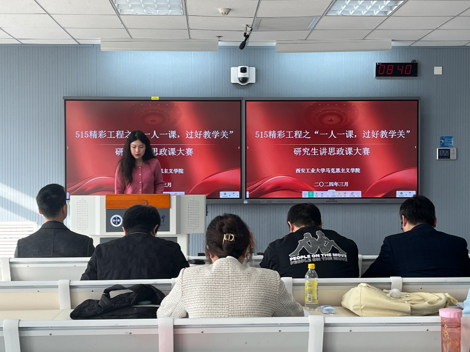 于2024年3月21日在教9-319教室举办515精彩工程之“一人一课,过好教学关”研究生讲思政课大赛。