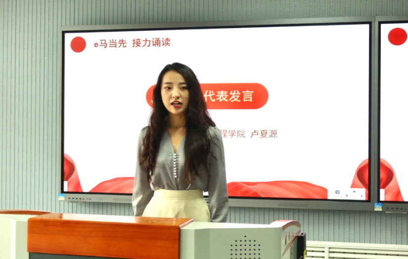 卢夏源同学上台发言。她分享了自己在准备碑文诵读过程中的心路历程,表示通过此次活动,不仅加深了对革命历史的理解,更激发了内心深处的爱国情怀,呼吁同学们要珍惜当下,不忘初心,牢记使命,将革命精神内化于心、外化于行。