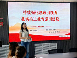 王芊芊同学以“古典文学赋能文化强国建设的三重维度”为题,剖析了中华优秀传统文化在新时代文化创新中的重要价值;彭莉君同学探讨了强化思政引领力在推动教育强国建设中的实践路径;温娇同学则从弘扬劳模精神、劳动精神、工匠精神的角度,论述了劳动创造在中国式现代化进程中的时代价值。