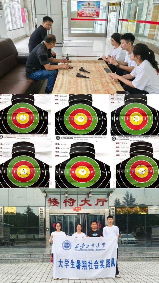 在陕西华山射击俱乐部,实践队在安全员的讲解和指导下进行了国产东风-3式5.6mm运动手枪的枪支分解与组装,并进行了手枪、步枪及狙击枪的实弹射击。通过切身体验,队员们拉进了与现代武器装备的距离,增强了对兵工精神的理解,心中“保家卫国” 的信念也更加坚定。