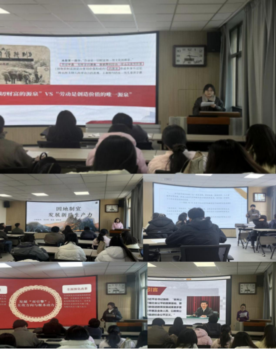 活动由聂子渊同学主持。五位研究生围绕马克思主义基本原理与当代议题作主题发言。史佳鹭系统阐释“因地制宜发展新质生产力”的战略意义与实践路径;何泽涵从拜物教批判理论出发,剖析数字资本主义时代新拜物教特征及中国应对;李彩惠梳理“六个坚持”在中国式现代化中的关键作用;岳莹探讨人工智能与教育深度融合的路径;任梓怡基于《哥达纲领批判》解析新质生产力对劳动价值论的发展。