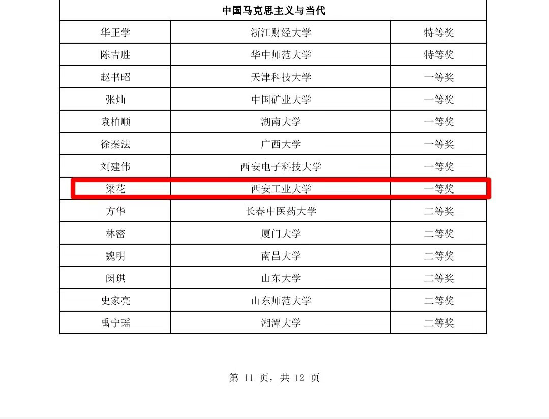 梁花副教授拟获《中国马克思主义与当代》课程一等奖,是学校在全国性教学竞赛中取得的又一突破。