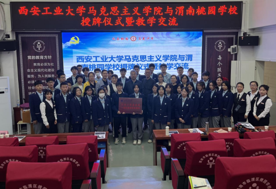 2023年9月22日,在西安工业大学的思政课堂上,渭南桃园学校师生与大学生同上了一堂思政课,感受大学教学课堂;在校园文化体验活动中,师生在图书馆阅读红色经典;在智造创新工场体验智能制造的魅力和优势;在校史馆感受学校厚重的历史积淀和奋发向上的进取精神;在光电实验室激发学生好奇心和探究的热情;在兵器馆通过鲜活的实物和深刻兵工精神,感受“自力更生、艰苦奋斗、开拓进取、无私奉献”的光荣传统;在大学食堂和大学生们一起用餐体验大学美好生活。