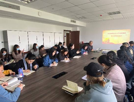 4月29日,新加坡博彩app 研究生第一党支部开展“学党史,铭初心”主题党日学习活动。李晓彤院长应邀为全体党员讲授党课,支部书记杨婧主持会议,全体学生党员参加此次活动。