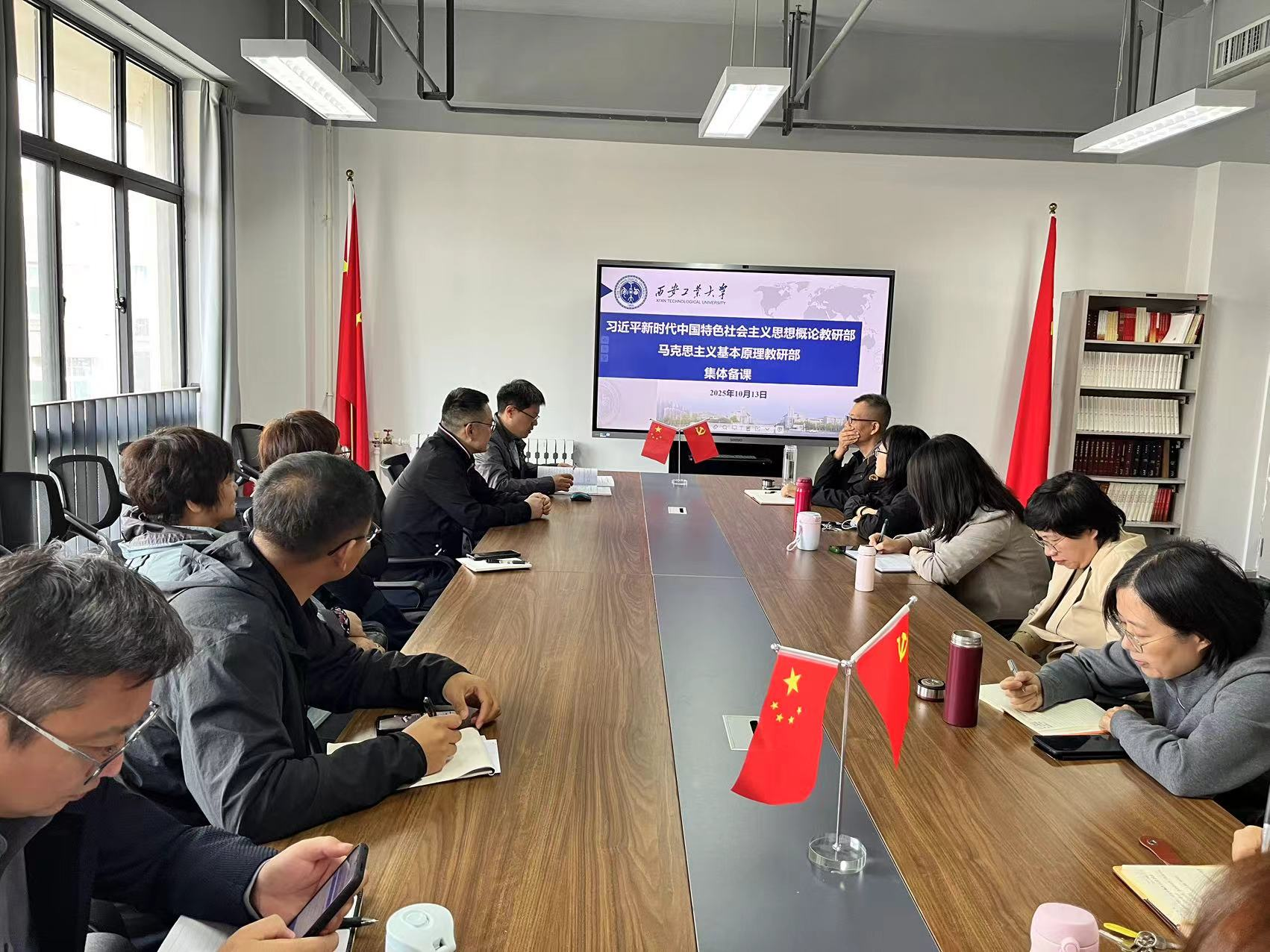 为深化课堂教学改革,让思政课“入脑入心”,2025年10月13日,习近平新时代中国特色社会主义思想概论教研部和马克思主义基本原理教研部开启集体备课行动,通过“共研、共备、共评”的教研方式,有效为教学质量提升注入新动能,着力提升高校思政课课堂教学质量。