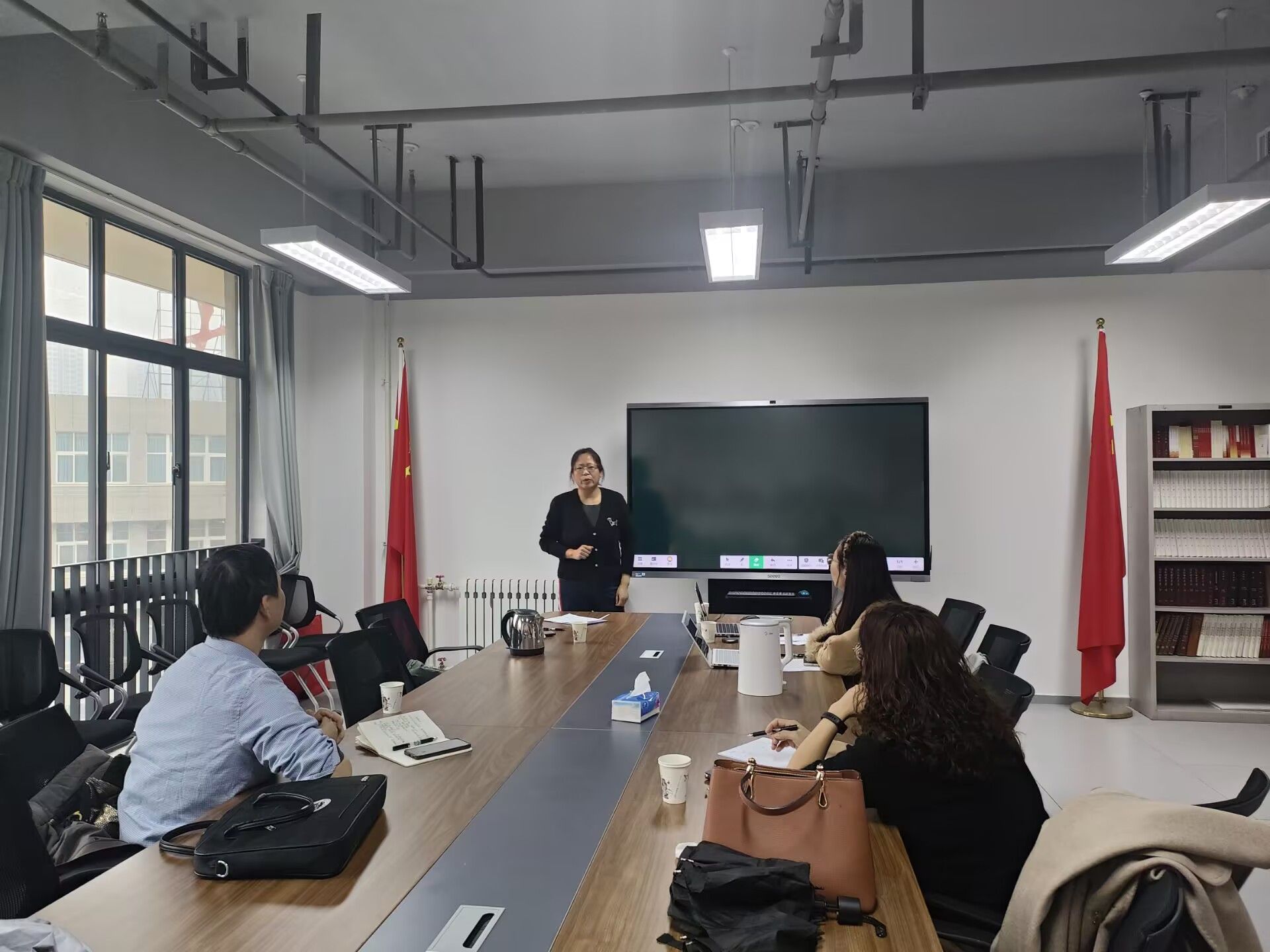 概论、纲要课程的2名教师暨团队成员参加了展示演练。曾咏辉对各位老师的展示内容、展示形式进行了详细的点评,从课程导入、逻辑思路等方面都提出了详细的改进意见。参赛教师暨团队成员认真吸收了专家指导意见,表示接下来要进一步优化教学设计,以饱满的精神状态准备现场展示活动。副院长孟文科主持了演练活动。